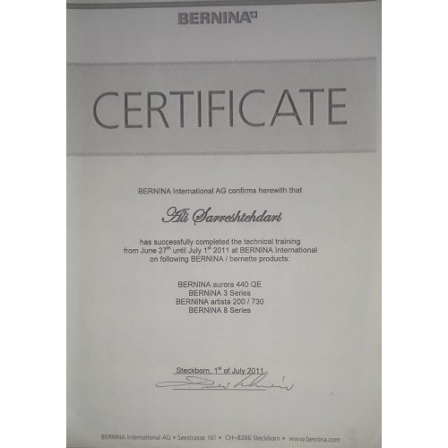 آقای مهندس سررشته داری بعنوان مدیریت خدمات فنی و پس از فروش و مهندسی فروش برنینا سوئیس در ایران