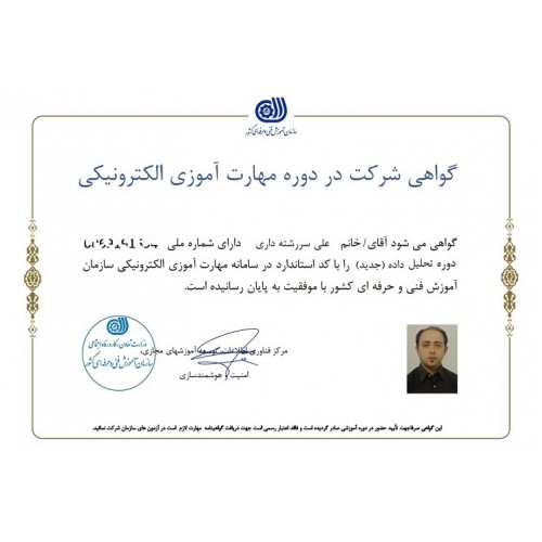 گواهی دوره تحليل داده با پایتون (Big Data) با کد استاندارد سامانه مهارت آموزی الکترونیکی سازمان آموزش فنی و حرفه ای کشور